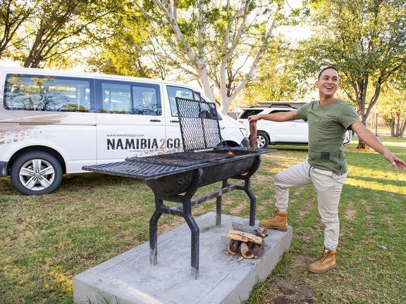 Die Stellplätze liegen eingebettet zwischen schattenspendenden Bäumen und kleinen Felsen, sodass Kinder viel Raum zum Entdecken haben und Eltern gleichzeitig eine ruhige Umgebung genießen können. Jeder Platz bietet ausreichend Privatsphäre und verfügt über praktische Einrichtungen wie Sanitärbereiche, Grillmöglichkeiten und schattige Sitzplätze – ideal für ein entspanntes Abendessen unter Namibias Sternenhimmel.
