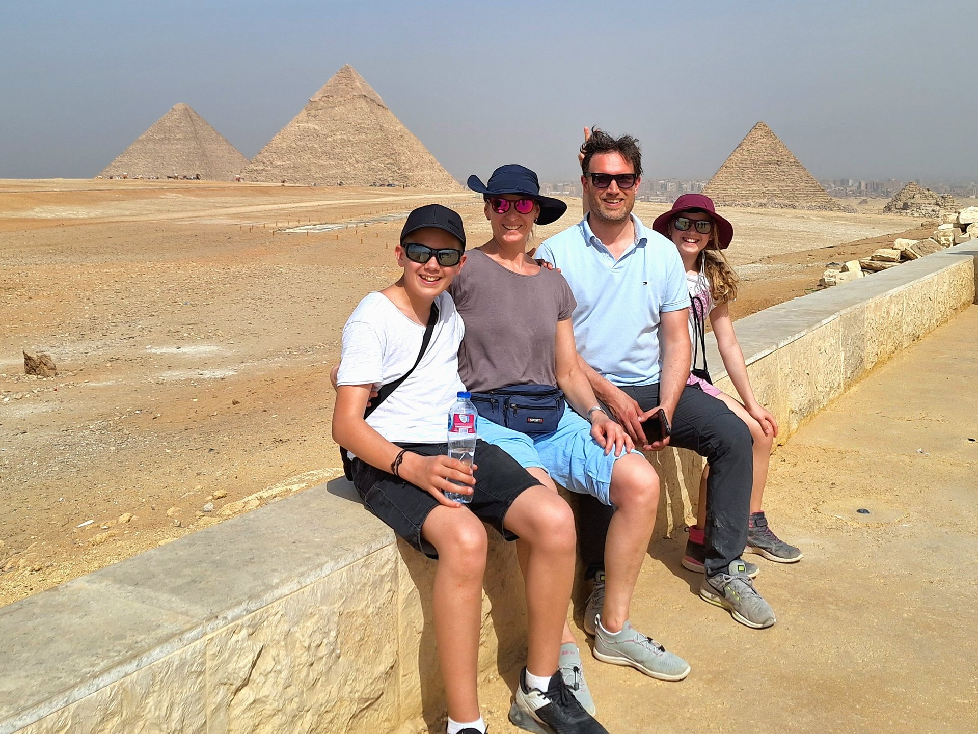 Heute beginnt unser großes Familienabenteuer mit dem Flug nach Kairo. Ein großer Teil der ägyptischen Bevölkerung lebt in der Hauptstadt, die eine der größten Städte der Welt ist. Am Flughafen werden wir von einem Tour-Koordinator herzlich begrüßt. Er hilft uns bei der Einreise und gibt uns erste Infos zum Ablauf und zum Frühstück am nächsten Tag. Dann werden wir in unser Hotel in der Nähe der Pyramiden gefahren– ein erster Hauch von Abenteuer liegt bereits in der Luft!