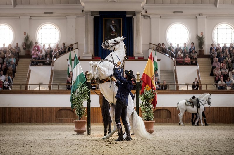 Dann fahren wir weiter zur Andalusischen Hofreitschule, um die weltberühmte Reitshow „Wie die andalusischen Pferde tanzen“ zu erleben! Während der spektakulären Aufführung bewundern wir das Können der Reiter und Pferde. Die Reitschule wurde 1987 offiziell vom spanischen König anerkannt und trägt seitdem den Titel der Königlich-Spanischen Reitschule.