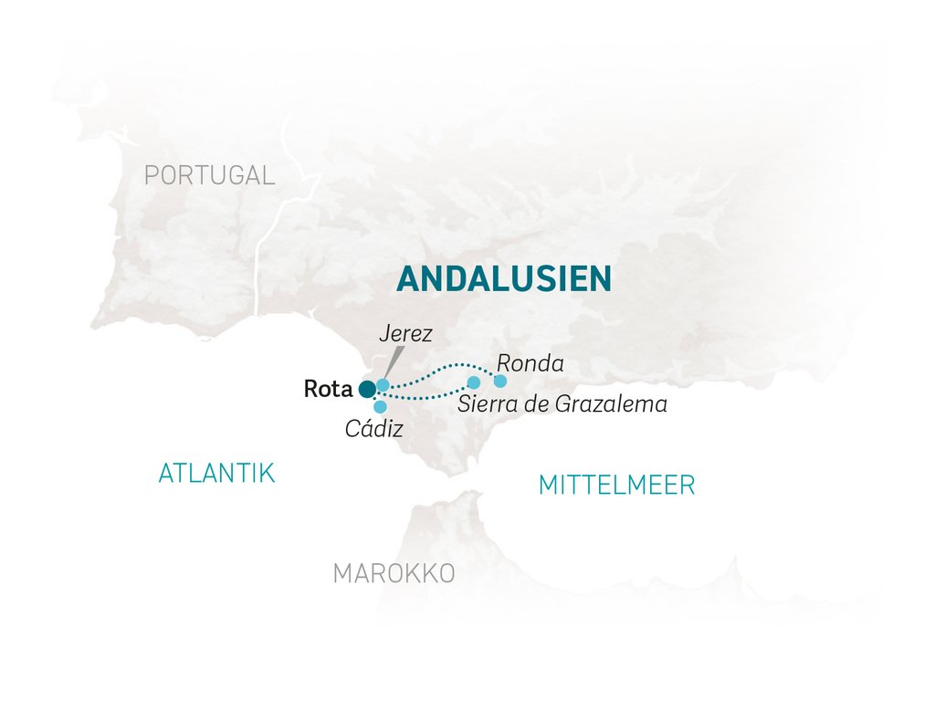 Flug nach Andalusien (nicht inkludiert – persönliches Flugangebot auf Anfrage) • Strand & Spaziergänge in Rota • Gemeinsames Abendessen