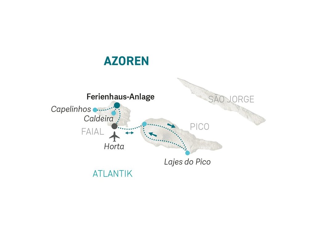 Für entspannte Momente sorgt unsere naturnah gelegene, familiäre Ecolodge, die viel Raum für Erholung inmitten der atlantischen Inselwelt bietet. Abgerundet wird die Reise durch die Überfahrt zur Nachbarinsel Pico und einen Besuch der lebendigen Hafenstadt Horta.