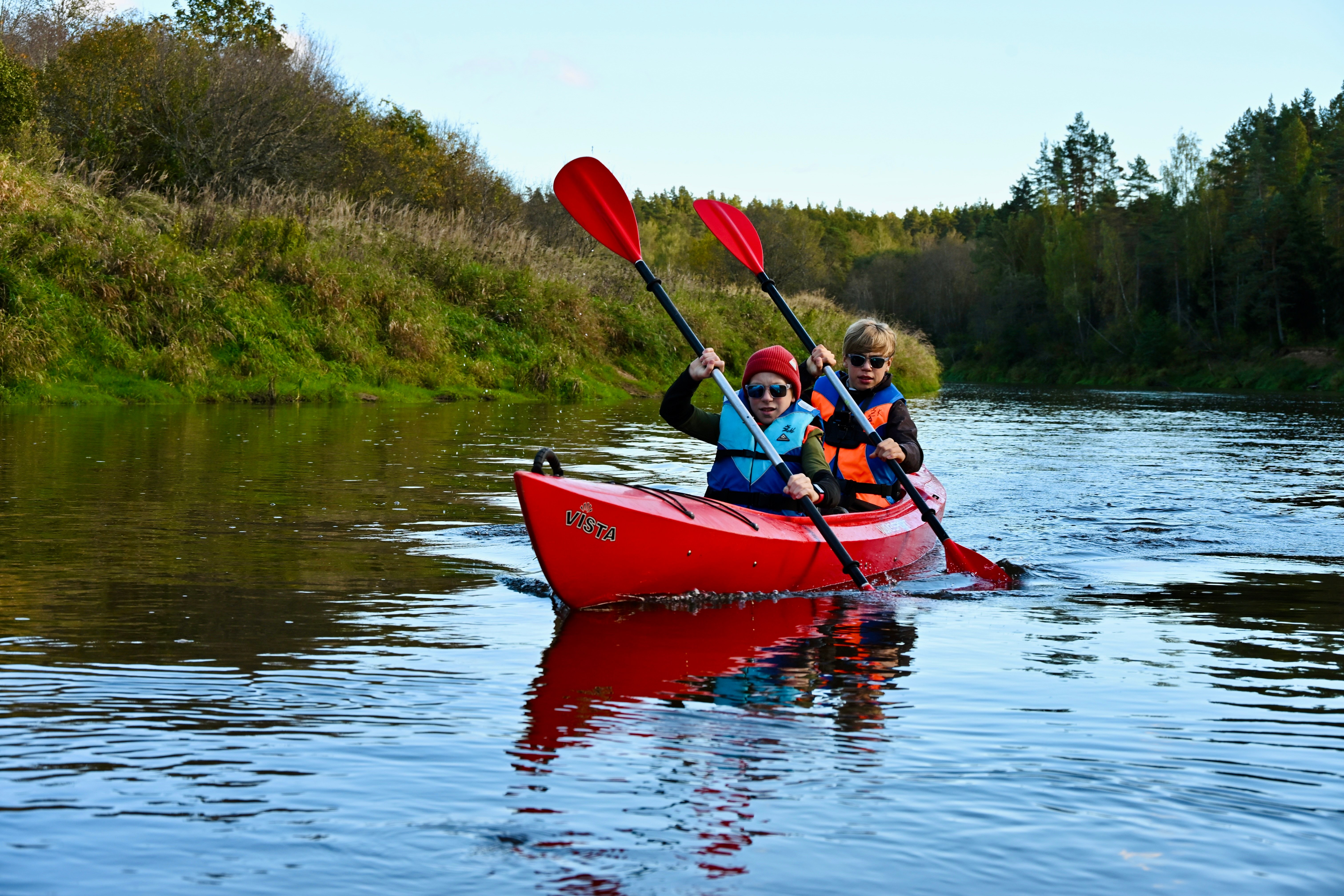 Heute erwartet uns ein weiteres Highlight auf unserem Baltikum Familienabenteuer. Wir unternehmen eine 4-stündige Kanutour auf der Gauja, die mit einer Länge von 452 km ideale Voraussetzungen hierfür bietet. Nach einer ausführlichen Einweisung besteigen wir unsere Kanus, ergreifen unsere Paddel und schon kann es los gehen. Vom ruhigen Wasser aus bestaunen wir die waldreiche Landschaft und die Steilufer aus Sandstein.