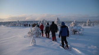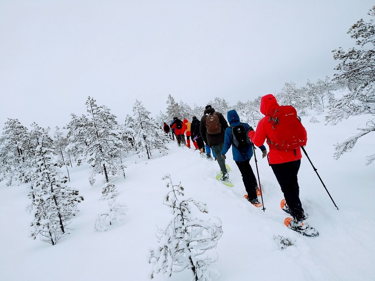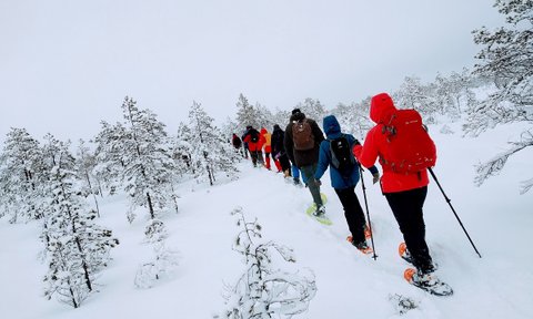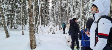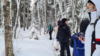 Gemeinsam begeben wir uns auf eine Schneeschuhwanderung durch den märchenhaften Winterwald. Hier gibt es keinen Lärm, keine Hektik, sondern nur die pure Schönheit der Natur. Während wir unsere Spuren im Schnee hinterlassen, entdecken wir auch Tierspuren auf den verschneiten Pfaden und stellen uns die Frage: Wer mag wohl in diesem Wald wohnen? Elche, Wölfe, Luchse oder Rehe? Vielleicht geben uns die Spuren, die wir im Schnee entdecken, Hinweise auf die Bewohner dieses Waldes und gewähren uns einen Einblick in ihr Leben in der Wildnis.