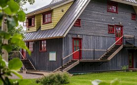 Unsere Unterkunft für die kommenden drei Nächte liegt im atemberaubenden Soomaa-Nationalpark. Die großzügige Anlage bietet schöne Gärten, Hängematten, Grill- und Bademöglichkeiten sowie eine familiäre Atmosphäre zum Wohlfühlen. Das Feriendorf liegt direkt am Fluss, der über einen kleinen Steg zugänglich ist – perfekt für eine erfrischende Abkühlung. Hier wird uns zum Abendessen schmackhafte Hausmannskost von einer waschechten Estin zubereitet!