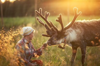 Am Vormittag erwartet uns eine besondere Wanderung, bei der wir in Begleitung von Rentieren über naturbelassene Weiden ziehen. Unser Guide teilt sein Wissen über diese faszinierenden Tiere mit uns, während die Rentiere unseren Proviant tragen und uns auf ruhigen Pfaden begleiten. Bei einem gemütlichen Picknick mitten in der Natur lassen wir uns unsere mitgebrachten Leckereien schmecken. Die Wanderung dauert etwa vier Stunden, ist entspannt und gut machbar, erfordert jedoch eine solide Grundkondition. Anschließend bleibt genügend Zeit, den Rest des Tages nach eigenen Wünschen zu gestalten und die beeindruckende Landschaft in Ruhe auf sich wirken zu lassen.