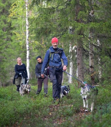 Nach der Einführung wählt der Tourleiter für jeden Teilnehmer sorgfältig einen passenden Husky aus. Ausgestattet mit einem speziellen Bauchgurt geht es dann mit dem persönlichen Wanderkumpel los: Die Hunde helfen beim Laufen, indem sie leicht ziehen und für ordentlich Tempo sorgen. Das macht nicht nur Spaß, sondern stärkt auch das Miteinander von Mensch und Tier.