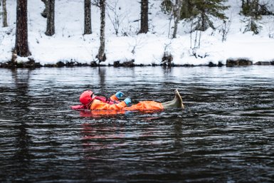 Um 10:00 Uhr startet eine River-Floatingtour. Von dem langsamen Fluss getragen genießen wir die sanfte Fahrt durch die eisige Landschaft. Das Floating ist eine unglaublich beruhigende Erfahrung, bei der wir einfach loslassen und die Sorgen des Alltags davonspülen können. Nach diesem erholsamen Erlebnis werden wir mit einem warmen Getränk verwöhnt, um uns aufzuwärmen und das Gefühl der Entspannung zu vertiefen. Die Mindestkörpergröße für diese Aktivität liegt bei 1,50 Meter.