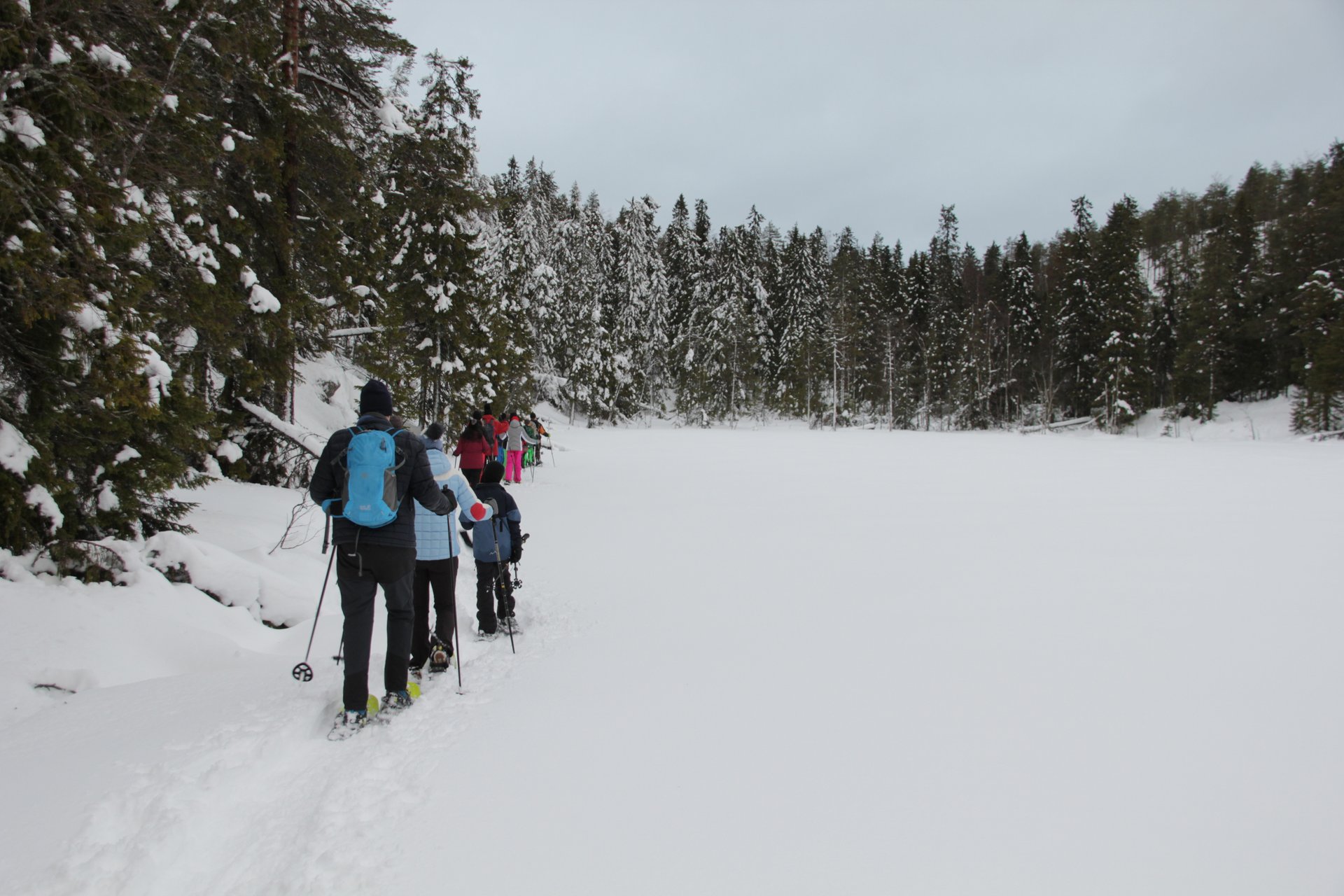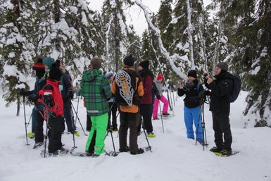 Um 10:00 Uhr geht es heute los. Wir tauchen in eine Winterwunderwelt voller Schnee ein! Wir begleiten unseren Guide auf einem zauberhaften Spaziergang durch die tief verschneiten Wälder, durch atemberaubende versteckte Ecken, wo die Bäume wie glitzernde Schneeskulpturen in der klaren Luft stehen. Wir genießen die pure Natur weit entfernt von dem Stadtlärm, wo die Ruhe der Natur sich magisch anfühlt. Die Tour dauert ca. 3,5 Stunden. Wir werden ca. 1 Stunde auf Schneeschuhen unterwegs sein und anschließend genießen wir ein Lagerfeuer mit leckeren Snacks.
