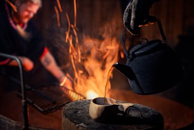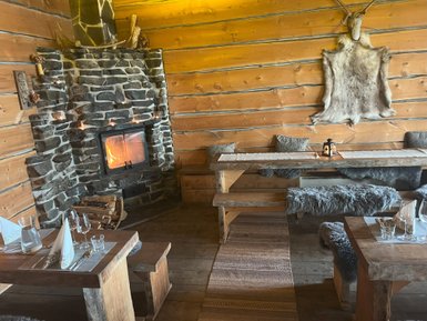 Zum Abschluss des Abends steht ein festliches Essen im Pohjanseita Wilderness Restaurant auf dem Programm. Unser Wildniskoch hat ein köstliches Drei-Gänge-Menü aus lokalen Zutaten für uns vorbereitet.