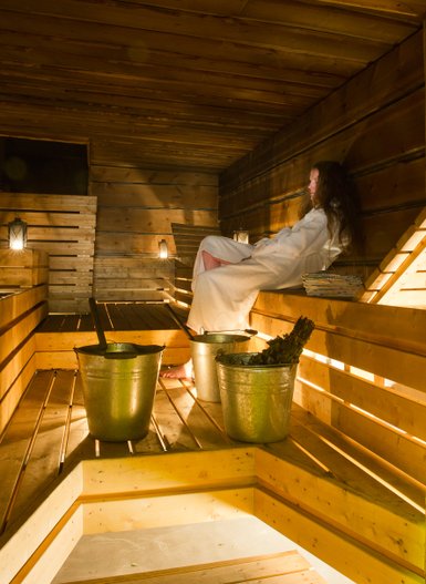 Abends um 18:00 Uhr erwartet uns ein ganz besonderes Erlebnis im Pohjanseita Wilderness Camp. Wir beginnen mit einem entspannenden Saunagang im Forest Spa, wo der Duft von frischem Holzfeuer und schneebedeckten Wäldern die Luft erfüllt. Hier können wir zwischen drei verschiedenen Saunen wechseln. Es stehen eine traditionelle Holzsauna, eine geheimnisvolle Rauchsauna und eine einladende Dampfsauna zur Auswahl. Nach dem Saunieren können wir uns im Außenpool erfrischen und die glitzernden Schneeflocken um uns herumtanzen sehen.