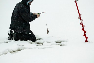 Auf einem eisbedeckten See angeln