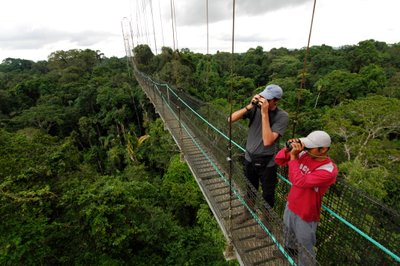 Die heutigen Aktivitäten beginnen bereits zwischen 6:00 und 7:00 Uhr, da im Morgengrauen der Dschungel besonders aktiv ist und die Temperaturen noch nicht so hoch sind. Wir laufen über den Pfad „Liana Chica“, wo eine Wanderung mit großartigen Anblicken des tropischen Waldes und der vielen verschiedenen Vogelarten beginnt. Zwei Meilen vom Napo Fluss und eine Meile von der Sacha Lodge entfernt, bietet der „Vogel-Weg“ den Gästen die Möglichkeit, eine besondere Perspektive auf den Regenwald zu bekommen. Zwei der drei Türme haben eine Höhe von 12 Metern. Der Canopy-Weg ist 36 Meter hoch und 275 Meter lang, wobei Gäste die Wunder und Schönheiten des tropischen Regenwaldes aus der Perspektive eines Vogels bestaunen können. Nach dieser Wanderung gehen wir zum „Liana Grande“, der uns durch den Urwald des Igapò führt. Der einheimische Guide erklärt uns Vieles über die Verwendung der verschiedenen Pflanzen dieser Region und deren Jahrhunderte alte Verwendung in der Medizin. Vom „Liana Grande“ kommen wir auf den Higuerón-Weg – hier gibt es ursprünglichen Wald mit enorm-großen Kapokbäumen und Feigen zu bestaunen. Der Higuerón Pfad führt uns schließlich zu einer Finca, in dem ein ausgezeichnetes Mittagessen zubereitet wird. Genießt die Umgebung der Finca, die Vögel und die erfrischende Bauweise der Hütten. Von der Finca aus könnt ihr zwischen einem einfachen Spaziergang am Napo-Fluss oder einer etwas schwereren Wanderung auf dem Pfad der Leoncillo wählen, wobei ihr dabei Tití Braunaffen beobachten könnt. Beide Wege führen zum Hauptweg zurück, der uns in Richtung Kanu und damit zurück zum Gasthaus bringt.