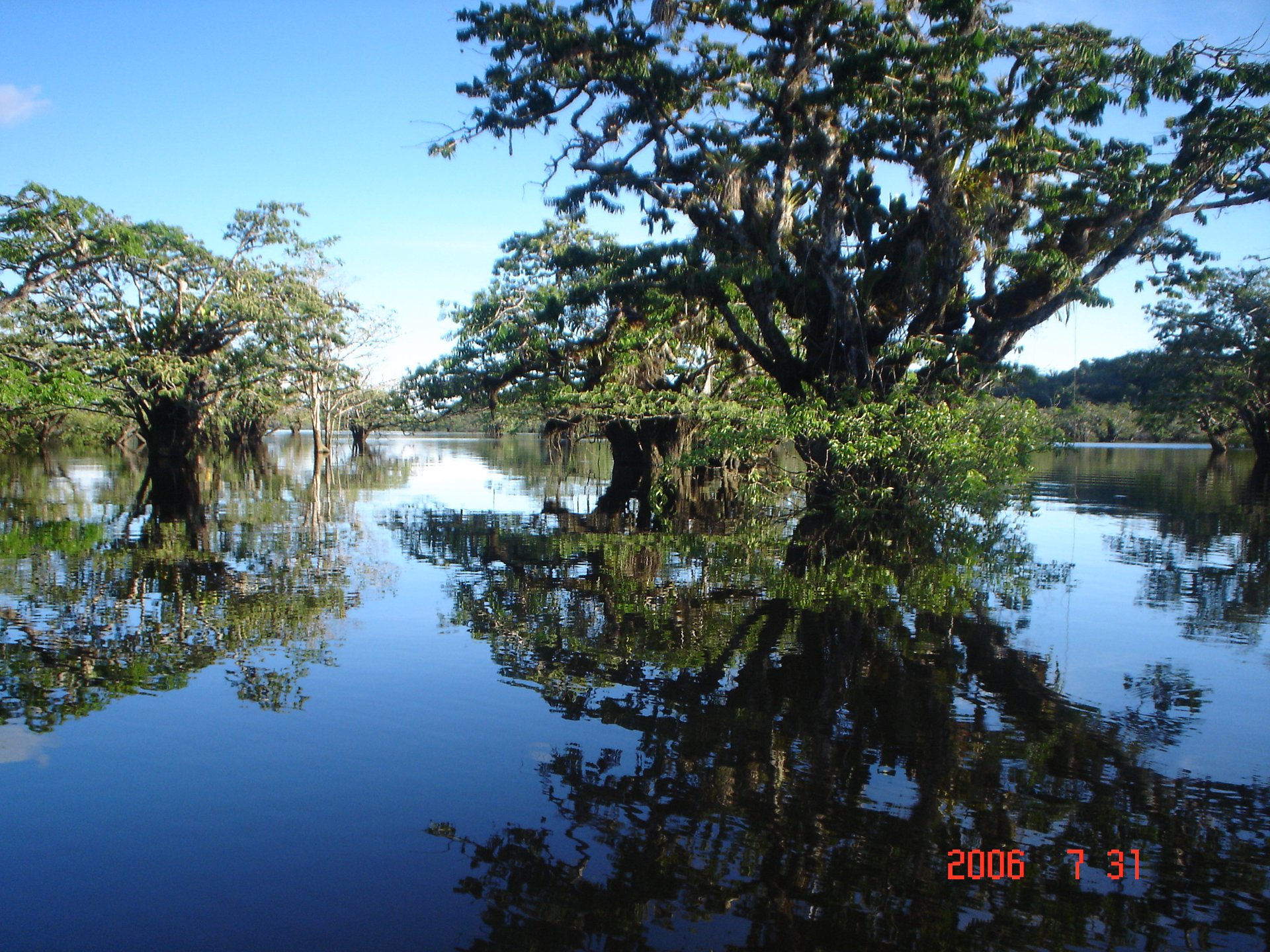 Der Rückweg führt mit dem Kanu durch den überschwemmten Wald, der nachts eine sehr stimmungsvolle Kulisse bietet. Hier hört man die Symphonie der Frösche und der Insekten, während man durch schmale Durchgänge des überschwemmten Waldes paddelt. Ihr könnt unterschiedliche Fledermausarten beobachten und den nächtlichen Gesang der Vögel lauschen. Schließlich kommen wir nach dieser Traumfahrt durch das Amazonasgebiet wieder in der Pilchicocha Lagune und bei unserem einladend beleuchteten Gasthaus an.