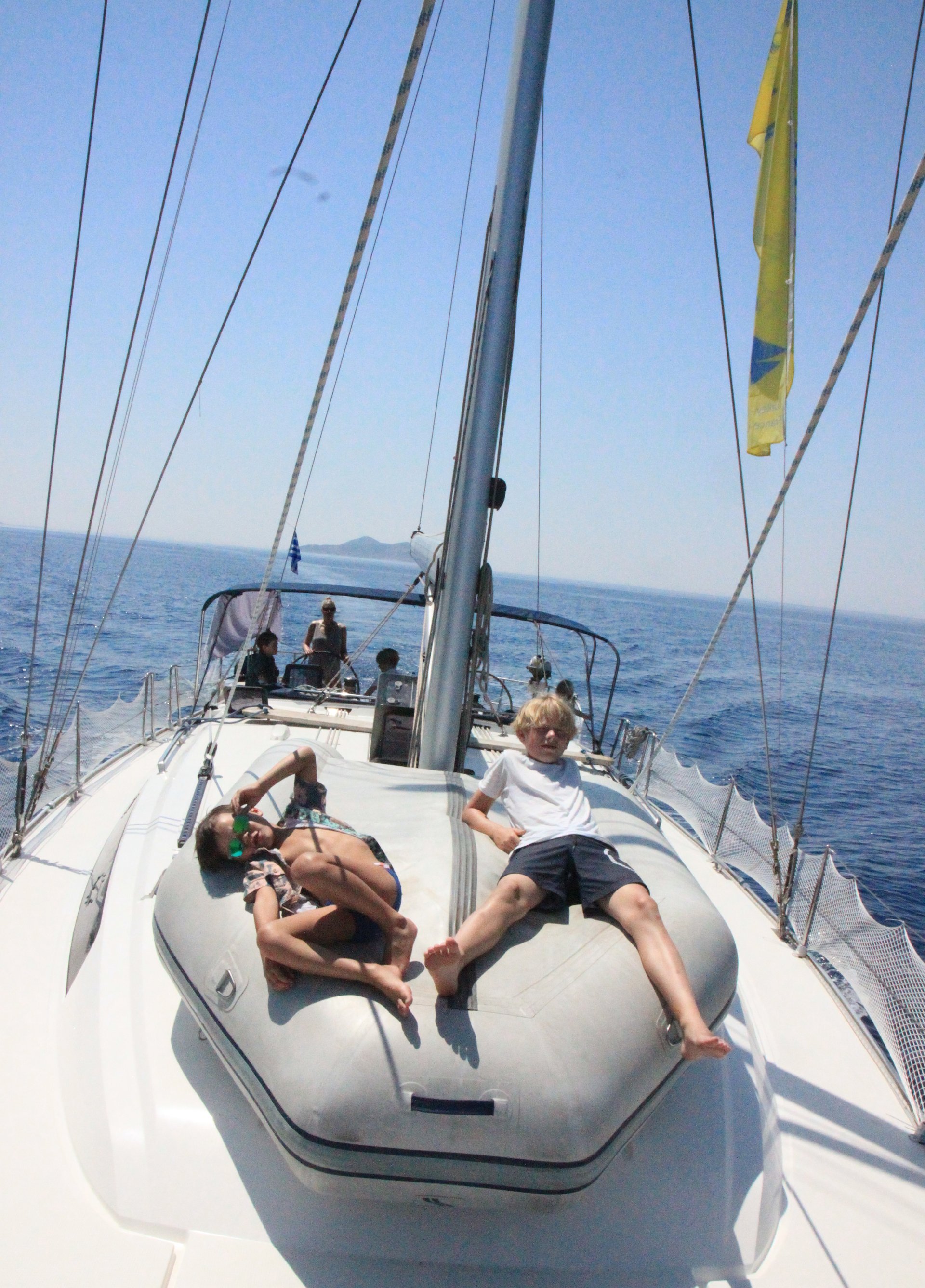 Ein Tag auf dem Meer startet früh, denn wir möchten das schöne Wetter nicht verschlafen. Zwischen 8 und 9 Uhr richten wir in der Regel unser gemeinsames Frühstück an und stimmen uns auf einen spannenden Tag ein. Anschließend entscheiden wir selbst, ob wir noch ein erfrischendes Bad im Meer nehmen oder direkt lossegeln möchten. Unsere kleinen Gäste sind in voller Segelmontur ausgestattet und die entspannten Windverhältnisse auf unserer Seite.