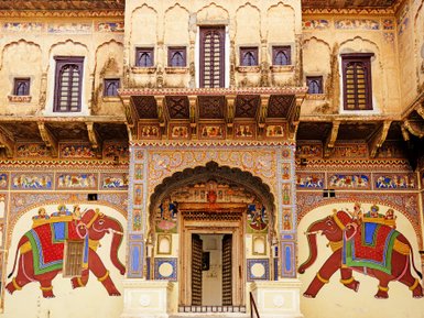 Die alte Handelsstadt Mandawa • Die bunten Havelis • Sich in der Wandmalerei probieren