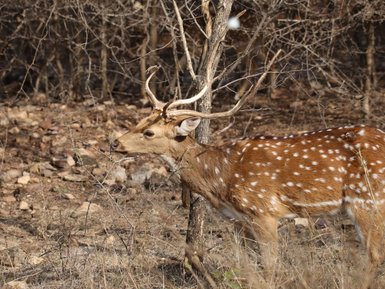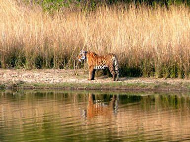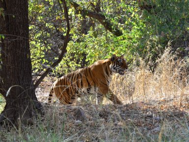 Zurück in unserem Hotel können wir ein leckeres Frühstück genießen, bevor wir am Nachmittag zu unserer zweiten Jeep-Safari aufbrechen. Der Nationalpark ist landschaftlich geprägt von grünen Bergketten, trockenen Felsgebieten, Seen und Flussläufen und bietet neben dem Tiger auch noch unzähligen Tier- und Pflanzenarten eine Heimat. Trotz der Konkurrenz mit anderen Raubtieren wie dem indischen Leoparden oder dem Lippenbären ist der Tiger immer noch der unangefochtene König des Dschungels. Die Artenvielfalt im Nationalpark scheint grenzenlos – Kormorane, Hyänen, Antilopen, Axis- und Sambarhirsche, Pfauen, Goldschakale und Wildschweine. Aber auch an den Seen und Flussläufen heißt es aufmerksam sein. Hier treffen wir auf Reptilien wie Krokodile, Wüstenwarane und Schildkröten. Dieses Erlebnis werden wir so schnell nicht vergessen!