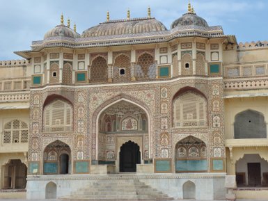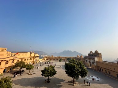 Am Morgen besichtigen wir einen Teil des Stadtpalastes, den berühmten Hawa Mahal – Palast der Winde, der leicht außerhalb des zentralen Geländes steht. Die hochragende Sandfassade diente als „schützende Trennung“ für die Hofdamen: Die Damen konnten hier das Markttreiben genießen, ohne selbst gesehen zu werden. Anschließend fahren wir zum Amber Fort. Die riesige Festungs- und Palastanlage zählt zum UNESCO-Weltkulturerbe und wurde in einem Fusionsstil aus Hindu- und muslimischer Architektur gebaut. In den Jahren von 1600 bis 1727 war es das königliche Schloss der Kachwahas. Das Fort ist nach der Stadt Amber benannt, welche wiederum nach der Göttin Amba benannt wurde.