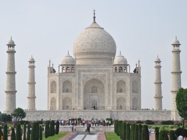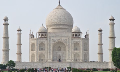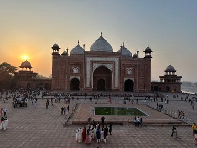 Wir setzen unsere Fahrt nach Agra fort. Agra ist mit etwa 1,7 Millionen Einwohnern für indische Verhältnisse eine recht kleine Stadt, zählt aber zu den meistbesuchten Städten in Indien – Grund dafür ist eines der wohl berühmtesten Bauwerke der Welt, das Taj Mahal. Nachdem wir in unser Hotel eingecheckt haben, besuchen wir am Nachmittag die weltberühmte Grabstätte. Im 17. Jahrhundert ließ der Großmogul Shah Jahan das Taj Mahal zum Gedenken an seine verstorbene Frau erbauen, weshalb das Bauwerk auch als Denkmal ‚der unsterblichen Liebe‘ gilt. Auf einer etwa 100 mal 100 großen Marmorplattform erhebt sich der prunkvolle Palast, der nur aus den edelsten Materialien erbaut wurde. Das Taj Mahal zählt nicht nur zum UNESCO-Weltkulturerbe, sondern gilt auch als eines der 7 neuen Weltwunder. Ein Besuch, der auf unserer Reise durch das goldene Dreieck nicht fehlen darf!