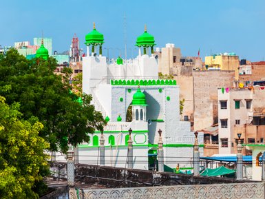 Unser erster Halt ist das Viertel Lutyens' Delhi, in welchem sich der Präsidentenpalast ‚Rashtrapati Bhavan‘ und das India Gate befinden. Hier können wir feinste britische Architektur und Relikte aus Kolonialzeiten bestaunen. Einen völlig anderen Eindruck erhalten wir in dem kulturell und historisch bedeutsamen Stadtteil Alt-Delhi. Im Mittelpunkt der Stadt stehen das prächtige Rote Fort und die aus rotem Sandstein erbaute Moschee Jama Masjid. Auf dem Hof finden über 20.000 Gläubige Platz und über 5.000 Handwerker waren bei dem Bau 1650 beteiligt. Danach steigen wir in eine typische Rikscha und fahren damit zum Marktviertel Chandani Chowk. Hier erwarten uns tausende bunte Töpfe mit ganz unterschiedlichen, exotischen Gewürzen. Alle möglichen Gerüche steigen uns in die Nase und natürlich können wir auch probieren und kaufen.