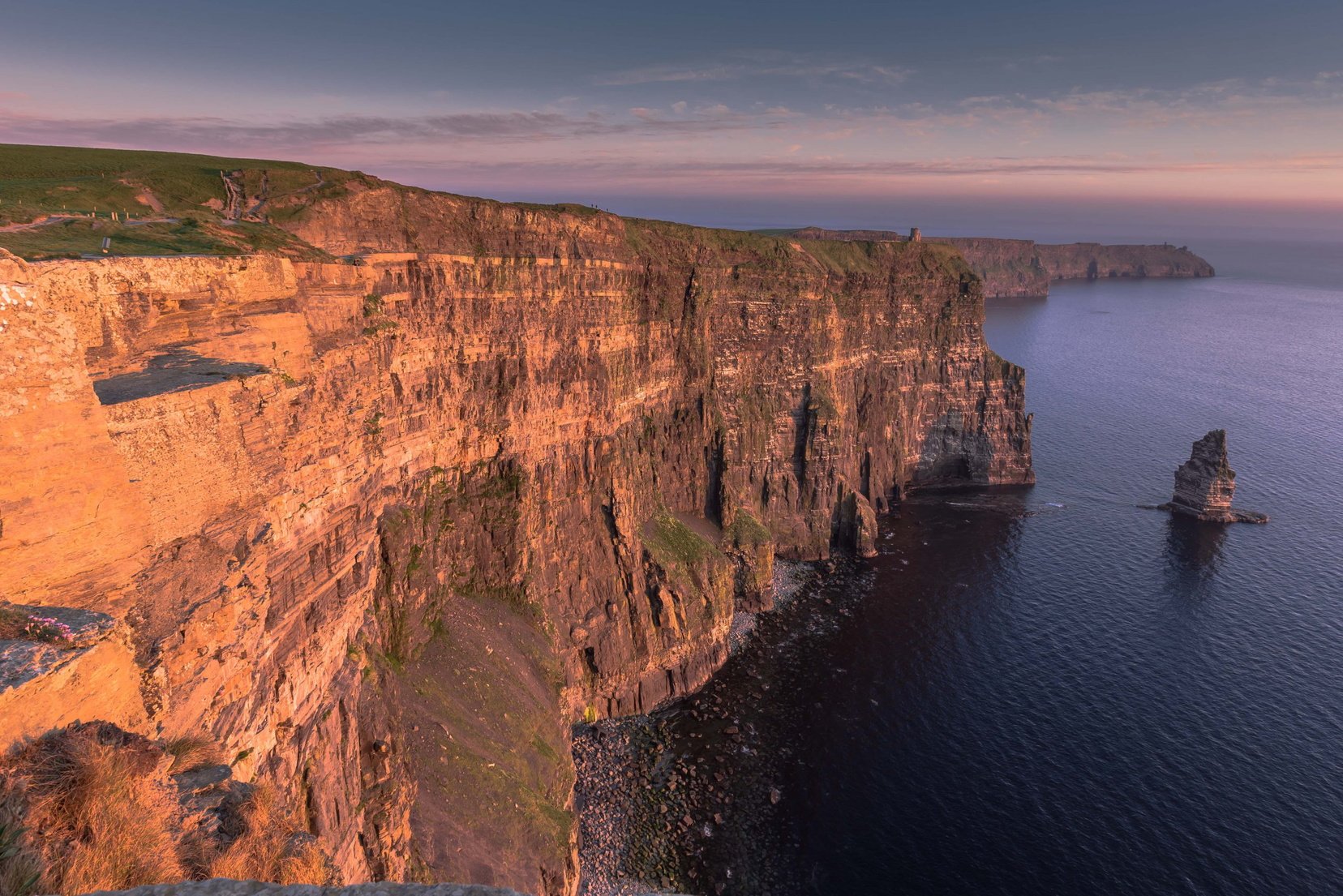 Unsere Gruppenreise beginnt am heutigen Tag mit einem echten Highlight. Von Lisdoonvarna aus starten wir heute zu den bekanntesten Klippen Irlands, den Cliffs of Moher, welche an der Südwestküste der irischen Hauptinsel liegen. Wir werden von unserem Transfer zunächst zum Visitor Center gebracht, wo wir bereits einiges über die beeindruckenden Felsen erfahren können. Anschließend spazieren wir entlang der steil abfallenden Klippen und genießen die grandiose Aussicht vom 214 Meter hohen, schroffen Naturphänomen. Die Klippen ragen nahezu senkrecht aus dem Ozean und erstrecken sich auf mehr als 8 Kilometer Länge.