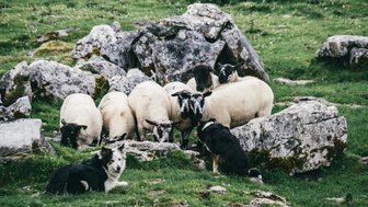 Anschließend geht es weiter zu einer Bergfarm. Hier wird uns eindrucksvoll demonstriert, wie ein irischer Hütehund die quirlige Schafherde zusammenhält, sie den Berg hinauftreibt oder einzelne Tiere separiert. Irland wird oft mit einem Lächeln als das Land der Schafe bezeichnet. Dies ist nicht verwunderlich, denn bis zu 8 Millionen Schafe grasen auf der grünen Insel, während es nur knapp 4,7 Millionen Einwohner auf Irland gibt.