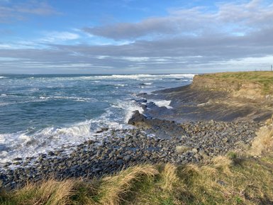 Wenn es unser Zeitplan und das Wetter zulässt, wandern wir zu einem weiteren Naturphänomen, den Puffing Holes: Diese skurrilen Löcher entstehen bei starker Brandung, wenn die Wellen auf die Felsformationen treffen.