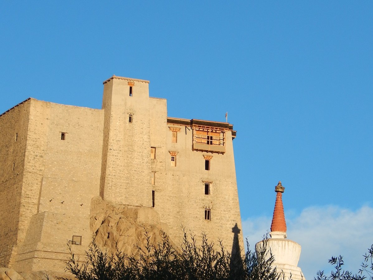 Der Leh Palast schmiegt sich beeindruckend an den Felsen des Namgyal Berges. Er war Schauplatz eines brutalen Krieges und weist noch heute Schäden der Kanonenkugeln auf. Der Siegesturm, der über dem Palast steht, wurde als Denkmal für die mutigen Krieger des 16 Jhdt. gebaut. Auch heute noch strahlt der Palast eine gewisse königliche Macht aus. Von hier hat man einen einzigartigen Blick auf die umliegende Landschaft und die zum Teil schneebedeckten Gipfel des Himalayas.