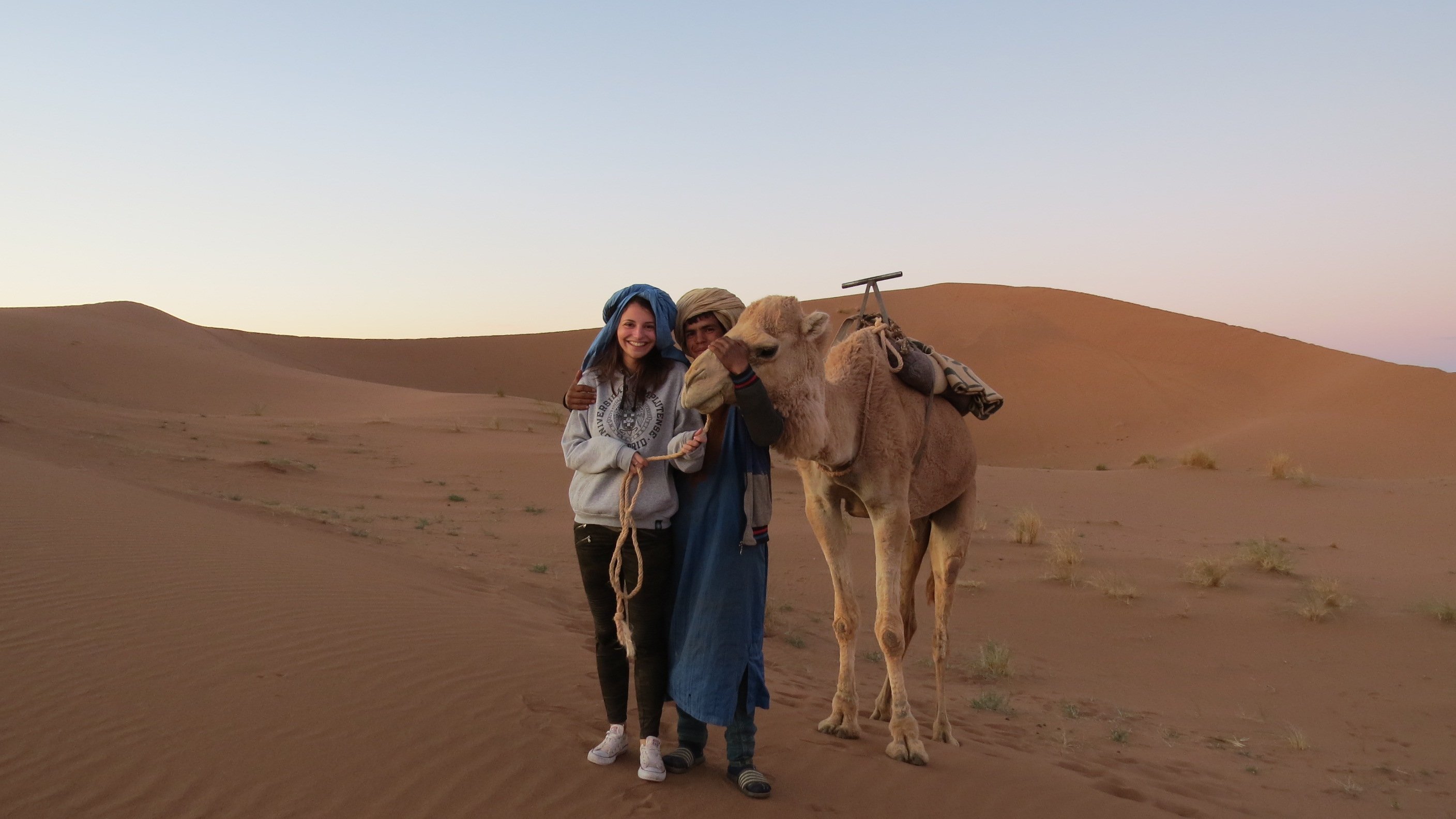 Am heutigen Reisetag begeben wir uns in die Wüste, die für die nächsten Tage unser zu Hause sein wird. Tagsüber erkunden wir die Wüste und jede Nacht schlagen wir unsere Zelte an einem anderen Ort auf. Beim Aufbau der Zelte packen wir alle gemeinsam an. Isomatten und Schlafsäcke werden uns für die Zeit zur Verfügung gestellt. Auf dem Weg durchqueren wir das fruchtbare Draa Tal, welches neben den Palmenplantagen besonders für die hier angebauten Datteln bekannt ist. Auch Fossilien kann man hier finden und entdecken.
