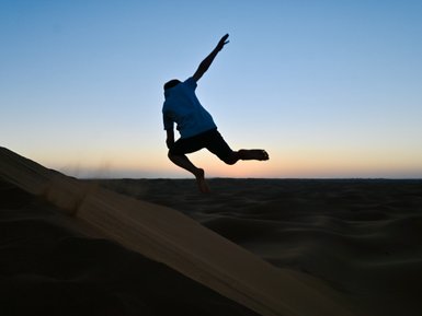 Der Nachmittag steht uns zur freien Verfügung. Wir können die höchsten Dünen erklimmen, das magische Panorama genießen und dort auf unseren letzten Sonnenuntergang in der Wüste warten.