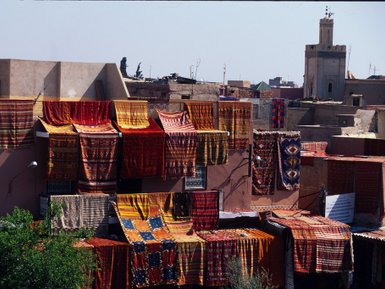 Im Anschluss schlendern wir durch die kleinen Gassen der Altstadt und lassen uns von dem bunten Treiben in den Souks mitreißen. Ein betörender Duft von Kardamom, Kurkuma und Safran liegt überall in der Luft. Von der Architektur bis hin zu den Gerüchen, Farben und Geräuschen werden Sie spüren, dass dieser Ort alle Ihre Sinne anspricht – ein Erlebnis, das man nicht verpassen darf! Die Souks von Marrakesch bieten übrigens nicht nur marokkanisches Kunsthandwerk, sondern auch eine Vielzahl von Obst- und Gemüsesorten. Auch Gewürze aller Art können erworben werden. Überall sieht man auch Handwerker, die immer noch mit altertümlichen Methoden arbeiten.