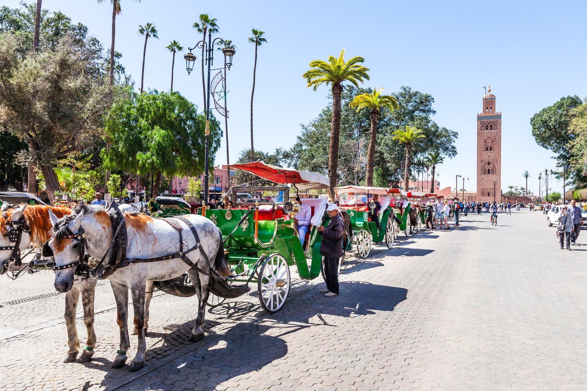 Nach dem Frühstück starten wir gegen 9:00 Uhr entspannt mit einer Kutschfahrt entlang der alten Stadtmauer und durch die lebhaften Straßen Marrakeschs – eine wunderschöne Möglichkeit, die Stadt auf traditionelle Weise kennenzulernen. Danach erkunden wir die Stadt bei einer geführten Stadtbesichtigung, bei der wir in der Regel von einem lokalen Guide begleitet werden. Wir besuchen eine Ledergerberei, erleben den traditionellen Herstellungsprozess und erkunden gemeinsam mit unserem Stadtführer die Medina (UNESCO-Weltkulturerbe) – ein Labyrinth aus engen Gassen, bunten Souks und lebendigen Handwerksvierteln.