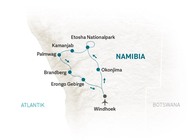 Flug nach Windhoek (nicht inkludiert – persönliches Flugangebot auf Anfrage)