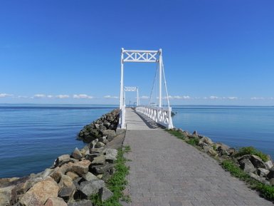 Entlang der Südseite des Flusses erreichen wir schließlich Rivière-du-Loup, wo wir die Fähre nach Saint-Siméon nehmen. Hier lohnt es sich, die Augen offen zu halten – dieser Abschnitt des Flusses ist bekannt für seine Wale und andere Meeresbewohner, die sich mit etwas Glück vom Deck aus beobachten lassen.