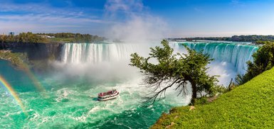 Morgens fahren wir in südliche Richtung, um eines der größten Naturwunder der Welt zu erreichen – es erwartet uns ein unvergesslicher Tag an den beeindruckenden Niagarafällen. Hier stürzen etwa 159 Millionen Liter Wasser pro Minute aus 54 Metern Höhe in die Tiefe! Die Wasserfälle sind eines der meistbesuchten Naturhighlights Nordamerikas. Die Entstehung der Niagarafälle ist auf das Ende der letzten Eiszeit vor etwa 12.000 Jahren zurückzuführen. Wir erkunden die faszinierende Umgebung von den tosenden Horseshoe Falls, deren Wassermassen mit gewaltiger Kraft in die Tiefe stürzen.