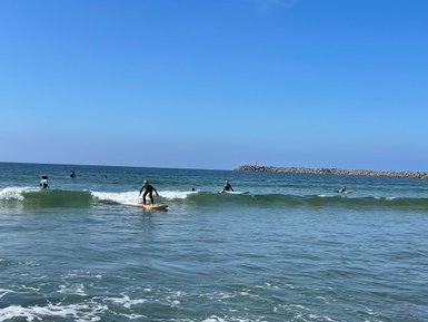 Nach dem ca. 1,5-stündigen Kurs können wir uns am Strand entspannen und sonnenbaden oder im Wasser toben. Die schönen Strandbar lädt ein, gemütlich etwas zu trinken und die Surfer zu beobachten.