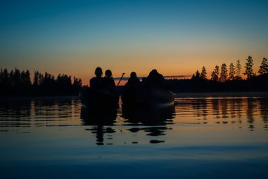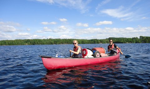 Ausgehend von der Kanubasis in Rök am See Östra Silen, startet die Tour in Canadiern mit vorheriger Einweisung durch den Guide. Wir genießen dabei nicht nur die Schönheit und Wildnis des Landes, sondern erleben viele spannende Momente mit neuen Freunden: Zusammen sitzen wir gemütlich am Lagerfeuer, backen Stockbrot und vielleicht erzählt jemand eine spannende Geschichte. Außerdem lernen wir die Natur Schwedens kennen und entdecken mit etwas Glück Elche und Biber! Vor und nach den Etappen im Canadier haben Eltern und Teenager genügend Zeit zum Verschnaufen, Sonnetanken und Baden. Übernachten werden wir auf ausgewiesenen Lagerplätzen auf kleinen Inseln und morgens werden wir von den Geräuschen der schwedischen Wildnis geweckt.