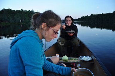 Die Länge der Tagesetappen wird individuell auf unsere Gruppe abgestimmt und zusammen suchen wir Tag für Tag nach geeigneten Lagerplätzen. Hier kochen wir über dem offenen Feuer und auf Spirituskochern. Unser Tourenbegleiter hat einige Tipps und Tricks auf Lager, sodass wir uns zum Beispiel auf frisches, selbstgebackenes Brot freuen können. Alle Zutaten und Nahrungsmittel sowie die Spezialausrüstung transportieren wir in unseren großen Canadiern, sodass uns die Verpflegung nicht ausgehen wird und wir immer ein Zeltdach über den Köpfen haben. Lediglich eine Isomatte und ein eigener Schlafsack müssen von Zuhause mitgebracht werden. Dann sind wir alle perfekt ausgerüstet für die Kanuwoche in Schweden mit Teenagern.