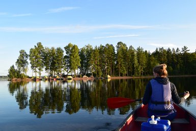 Individuelle Anreise (nicht inkludiert) • Treffen in der Kanubasis Rök • Kanu lernen • Mini-Etappe zum ersten Lagerplatz