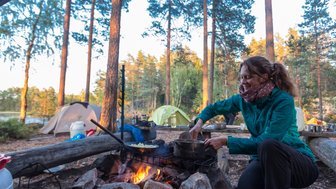 Die Länge der Tagesetappen wird individuell auf unsere Gruppe abgestimmt und zusammen suchen wir Tag für Tag nach geeigneten Lagerplätzen, die oft mit einer Feuerstelle, einem kleinen Unterstand und einer Trockentoilette extra für Kanuten angelegt wurden. Die Möglichkeit zu duschen und das Mobiltelefon aufzuladen gibt es, während wir auf Tour sind, nicht. Hier kochen wir über dem offenen Feuer und auf Spirituskochern. Unser Tourenbegleiter hat einige Tipps und Tricks auf Lager, sodass wir uns zum Beispiel auf frisches, selbstgebackenes Brot freuen können. Alle Zutaten, Nahrungsmittel sowie die Spezialausrüstung transportieren wir in unseren großen Canadiern, sodass uns die Verpflegung bestimmt nicht ausgehen wird und wir immer ein Zeltdach über den Köpfen haben. Lediglich eine Isomatte und ein eigener Schlafsack müssen von zuhause mitgebracht werden. Dann sind wir alle perfekt ausgerüstet für den riesigen Abenteuerspielplatz Schweden.