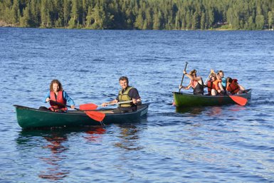 Ein wahres Paddel-Paradies wartet darauf, von unserer Gruppe erforscht zu werden: Die Seen von Dalsland und Värmland sind für Kanutouren mit Kindern hervorragend geeignet, denn hier gibt es eine Vielzahl an Lagerplätzen mit Feuerstellen. Von Insel zu Insel führt uns die Kanutour, bei der wir die Wildnis des Landes intensiv erkunden können. In den Paddelpausen warten außerdem kindgerechte Abenteuer auf uns und die Kids können zum Beispiel eine Wasserschlacht im klaren Wasser der Seen veranstalten.