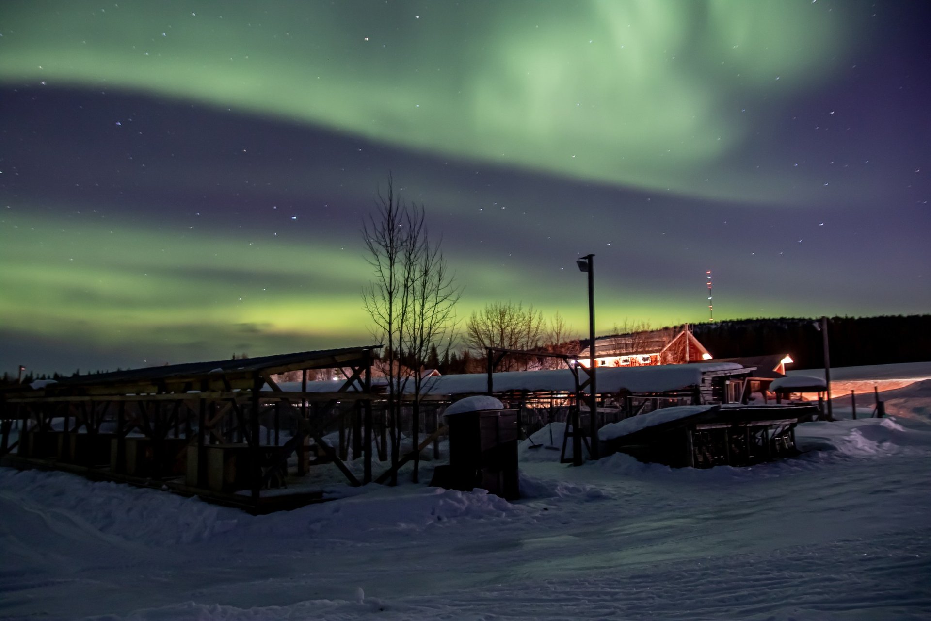 Nach der Ankunft auf schwedischem Boden werden wir in Arvidsjaur herzlich empfangen und fahren weiter zur Huskyfarm in Storberg. Dort erwartet uns eine Führung durch die Unterkunft und die restliche Farm. Während eines gemeinsamen Imbisses erfahren wir mehr über die geplante Reise und bekommen unsere Winterausrüstung.