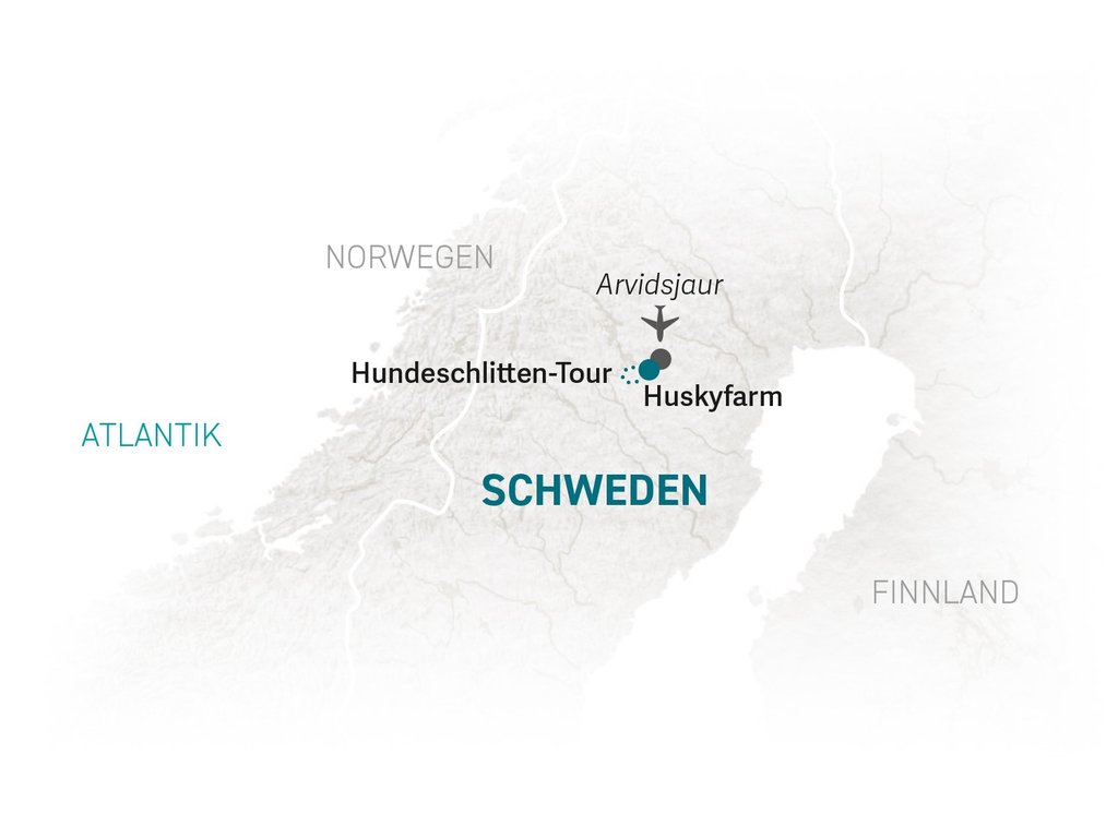 Individuelle Anreise (nicht inkludiert) • Ankunft in Schweden • Transfer zur Huskyfarm • Unterkunft kennenlernen