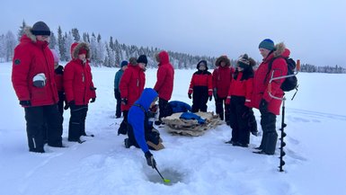 Beim Eisangeln in den fischreichen Gewässern Nordschwedens tauchen wir in eine alte samische Tradition ein. Wir lernen in kleineren Gruppen die Kunst des Eisfischens und genießen die Ruhe der verschneiten Landschaft.