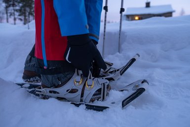 Am Abend besteht auch die Möglichkeit, eine Nordlichtertour im atemberaubenden Lappland zu erleben oder alternativ eine spannende Schneeschuh-Nachtwanderung.