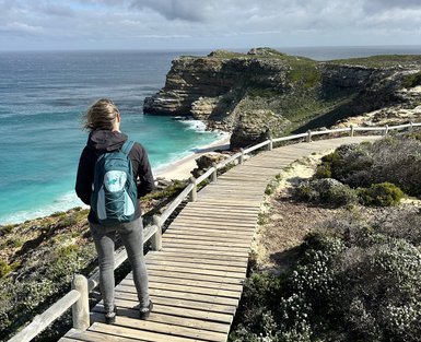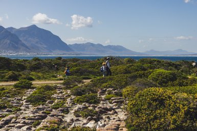 Eine Wanderung im Fernkloof Nature Reserve, bei dem wir zusammen mit unserem Reiseleiter mehr über das Cape Floral Kingdom erfahren, ist außerhalb der Walsaison sehr zu empfehlen. Das Gebiet ist für seine unberührten Fynbos bekannt. Mit etwas Glück kann man auch ein paar Tiere entdecken, zum Beispiel Klippspringer, Paviane oder Mangusten. Der Rundweg ist etwa 4,2 km lang und dauert durchschnittlich 1,5 Stunden. Es ist ein beliebter Weg zur Vogelbeobachtung mit schönen Aussichtspunkten.