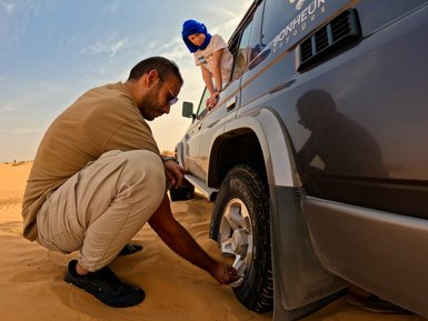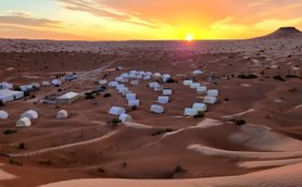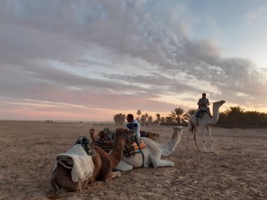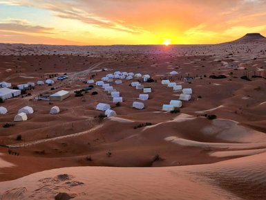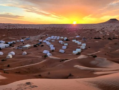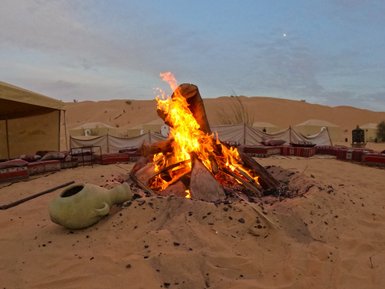 Ein arabisches Sprichwort besagt, dass niemand so aus der Wüste zurückkommt, wie er hineingeht. Wer sich auf sie einlässt, ist ihr verfallen…! Keine Angst – wir begeben uns mit wüstentauglichen Allradfahrzeugen nach Tembaine und fahren rund 3 Stunden im Jeep über Sand- und Schotterpisten. Die Nacht verbringen wir in einem gut ausgestatteten Wüstencamp im Herzen der Sahara. Nach einem gemeinsamen Abendessen im Wüstencamp lassen wir den Abend gemütlich am Lagerfeuer ausklingen, beobachten die unendliche Milchstraße am nachtschwarzen Himmel und werden von der magischen Atmosphäre der Wüste verzaubert.