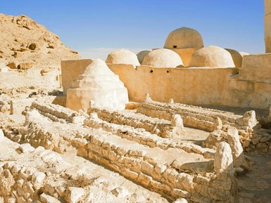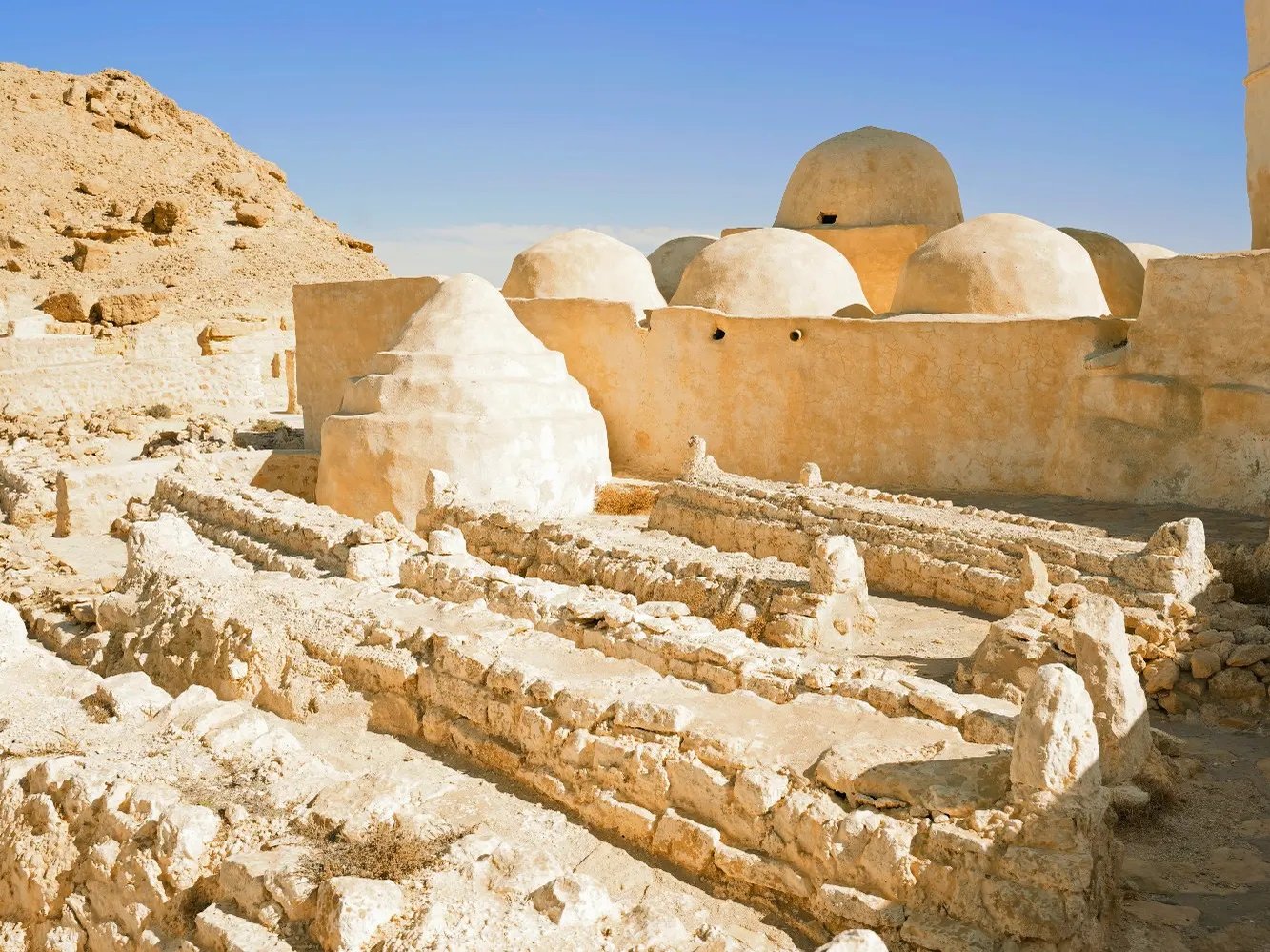 Unterwegs machen wir noch einen Stopp in dem historischen Dorf Chenini. Die Bewohner früherer Jahrhunderte lebten hier als Bauern und Viehzüchter in einer halbnomadischen Lebensweise, die noch bis in die erste Hälfte des 20. Jahrhunderts hinein fortdauerte. Als Konsequenz der seit den 1960er Jahren permanent zurückgehenden Regenfälle arbeiten jedoch viele Einwohner in Tataouine oder auf der Insel Djerba oder haben den Ort gänzlich verlassen. Nicht weit vom Dorf entfernt liegt die Moschee der Siebenschläfer, die von sieben riesigen Gräbern umgeben wird. Der Legende nach handelt es sich um die Gräber von Männern, die zur Römerzeit verfolgt wurden und die nach drei Jahrhunderten aus einem tiefen Schlaf erwachten.
