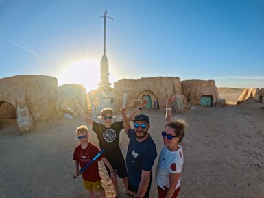 Wir starten in der Hauptstadt Tunis, tauchen in die tunesische Geschichte ein und schlendern durch eine der schönsten Medinas in Nordafrika. Dann geht es über Sousse in das Berberdorf Ksar Hadada, wo wir in einer Star Wars Filmkulisse übernachten. Weiter geht es mit einem Jeep mitten in die Sahara-Wüste: Wir übernachten in einem Beduinenzelt unter dem magischen Sternenhimmel und unternehmen einen Kamelritt durch das Dünenmeer. Auf unserem Programm steht auch das Naturphänomen Chott el Djerid, der größte Salzsee der Sahara. Zudem begeben wir uns immer wieder auf die Spuren von Darth Vader und Luke Skywalker: die ikonischen Star Wars Drehorte sind ein echtes Highlight für die Kids!
