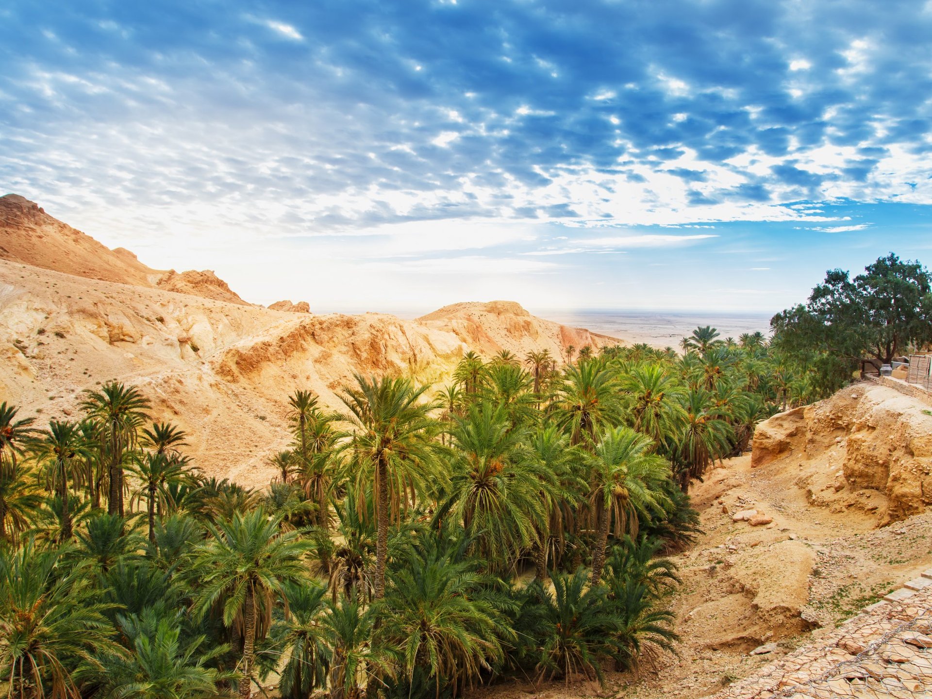 Nachdem wir in die Welt von Tatooine eingetaucht sind, entdecken wir die paradiesischen Bergoasen Chebika und Tameghza mit riesigen Dattelpalmengärten, schroffen Canyons und märchenhaften Wasserfällen. Anschließend setzen wir unsere Fahrt weiter fort zum Canyon von Mides.
