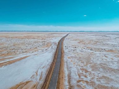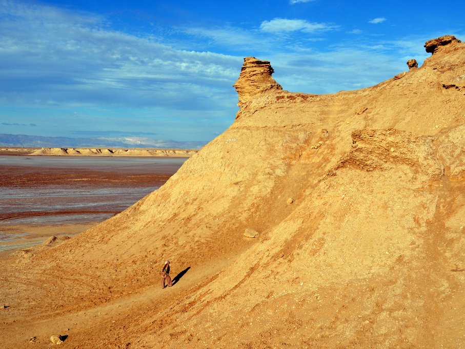 Anschließend überqueren wir den riesigen Salzsee Chott el Djerid. Mit ca. 8.000 km² ist er das größte Salzbecken Nordafrikas. Diese sehr faszinierende Landschaft diente bereits einer Vielzahl von Film- und Buchautoren als Kulisse, darunter Karl May. Bei starkem Sonnenschein können wir mit etwas Glück sogar eine Fata Morgana sehen. Ihren Ursprung im Salzsee findet auch die Sandrose, auch bekannt als die schönste Blume der Wüste.